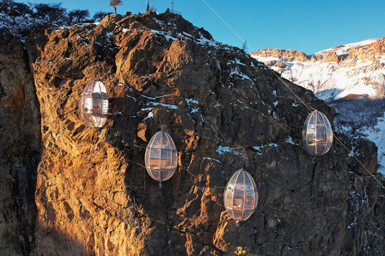 Cuatro cápsulas transparentes situadas en una impresionante pared de roca, a 270 metros de altura, con vistas incomparables.
