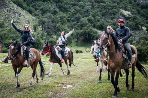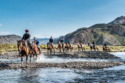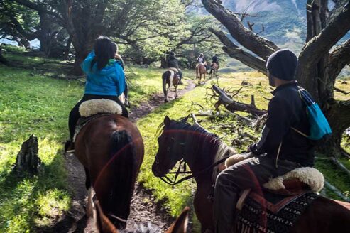 Montaremos en los caballos por aproximadamente 2 hs por los rincones mas remotos de la estancia, disfrutando de la naturaleza que nos rodea, atravesaremos bosques de ñires y lengas, arroyos y los cordones montañosos del lugar, desde donde podremos observar las mejores vistas panorámicas de la estancia.