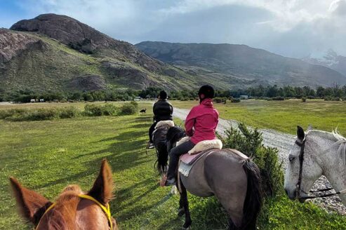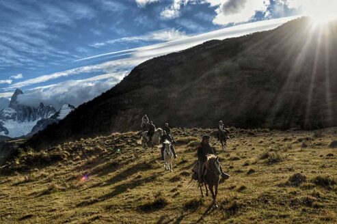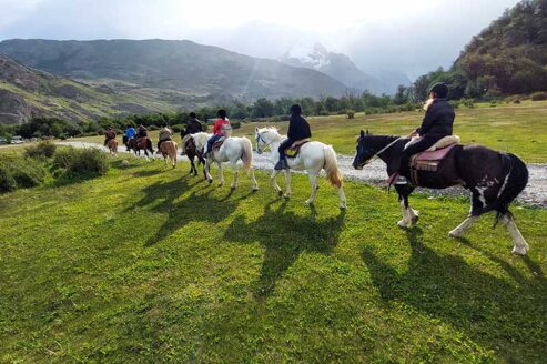 Montaremos en los caballos por aproximadamente 2 hs. Partiendo de los corrales, atravesaremos todo el cañadón de la Vizcacha y su espectacular mallín. Antes de entrar en el bosque, en la pampita, podremos disfrutar de una vista panorámica del cerro Chalten, Luego, ya en el bosque de Lengas y Ñires, avanzaremos en un constante y leve ascenso hasta llegar a la Laguna Lita, Una vez en el lugar, y mientras se prepara el almuerzo, realizaremos un pequeño trekking al mirador de Laguna Cóndor.